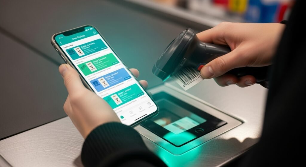 Instead of clipping paper coupons, just scan your store’s app before checkout.